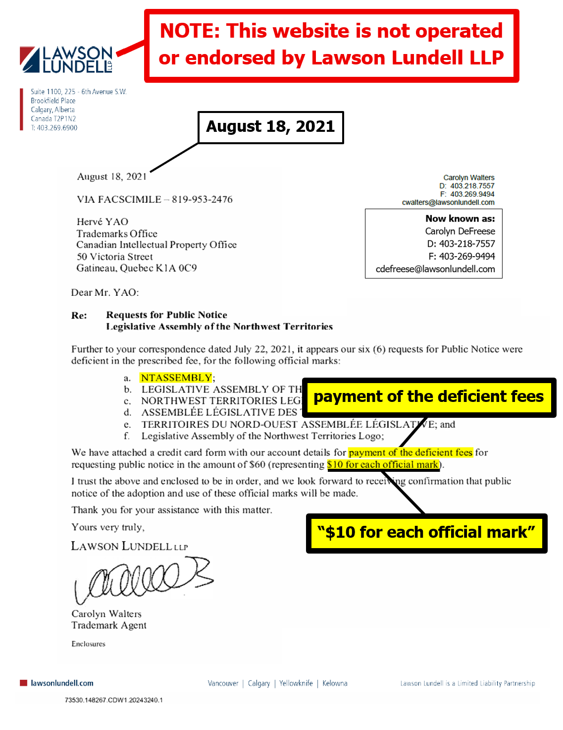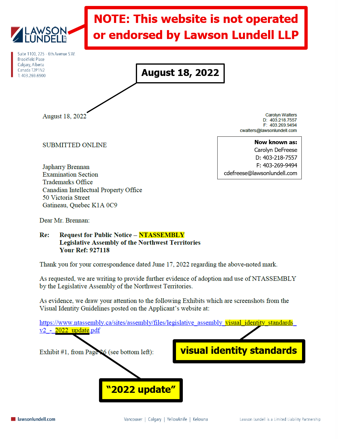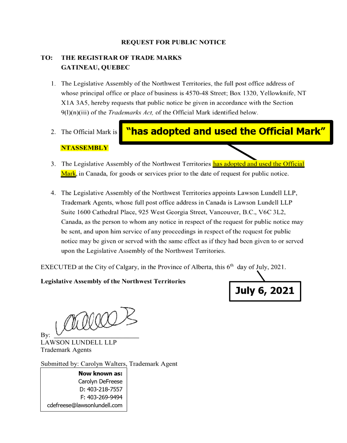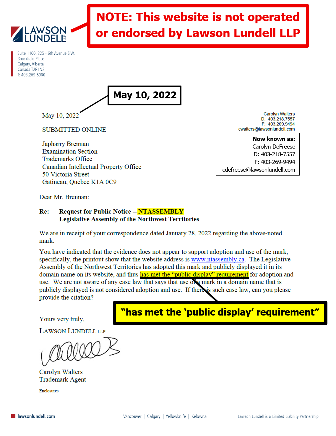 "the NTLA owns the domain name www.ntassembly.ca" is FALSE: