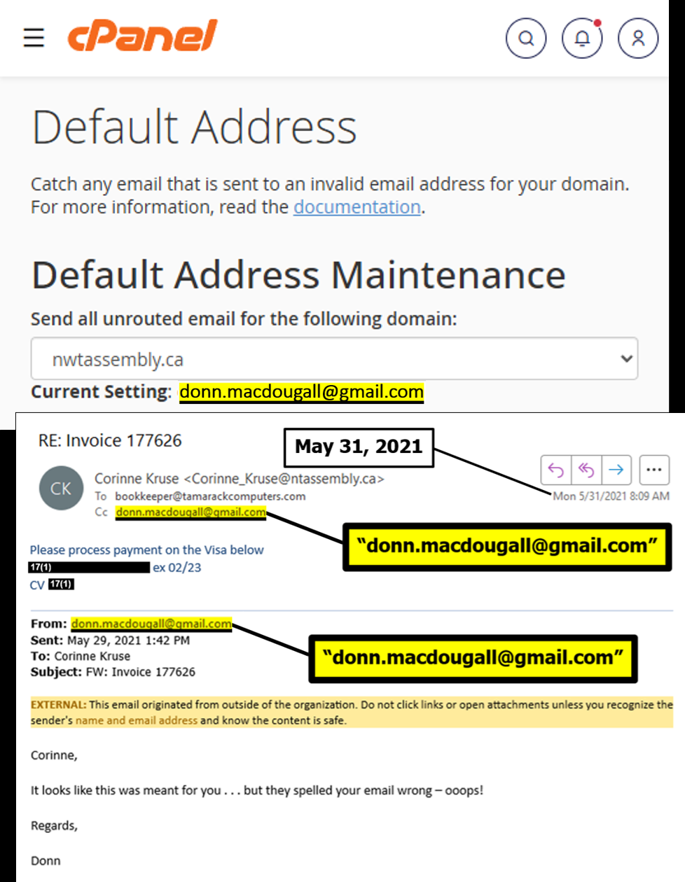 "created spoofed email accounts" is FALSE: