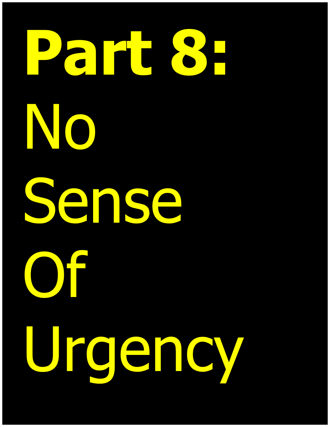 Part 8: No Sense Of Urgency