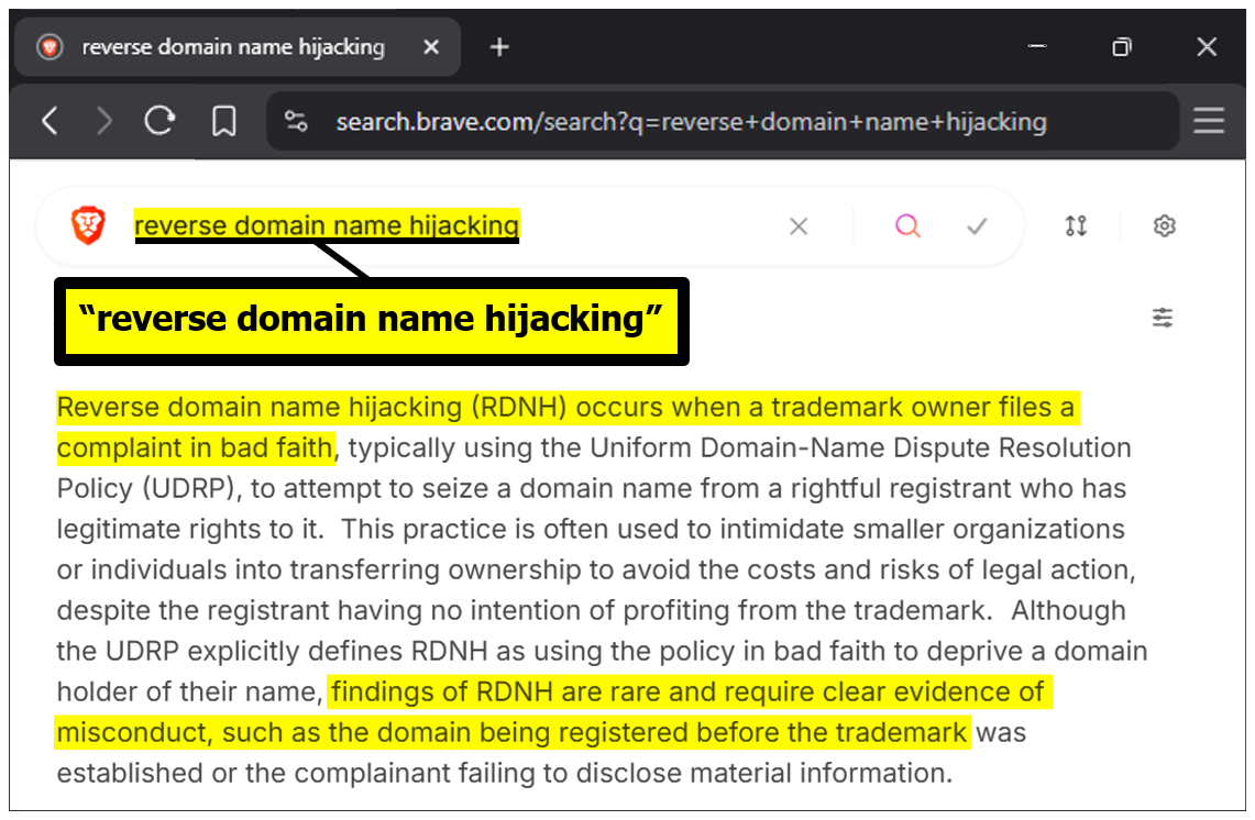 Reverse Domain Name Hijacking: